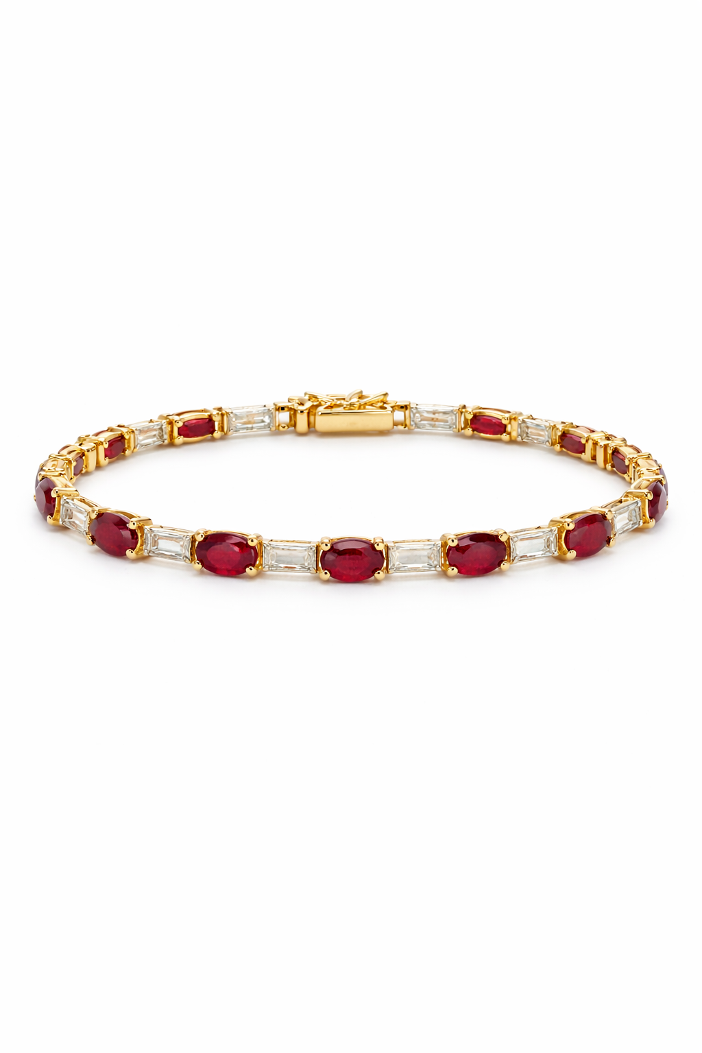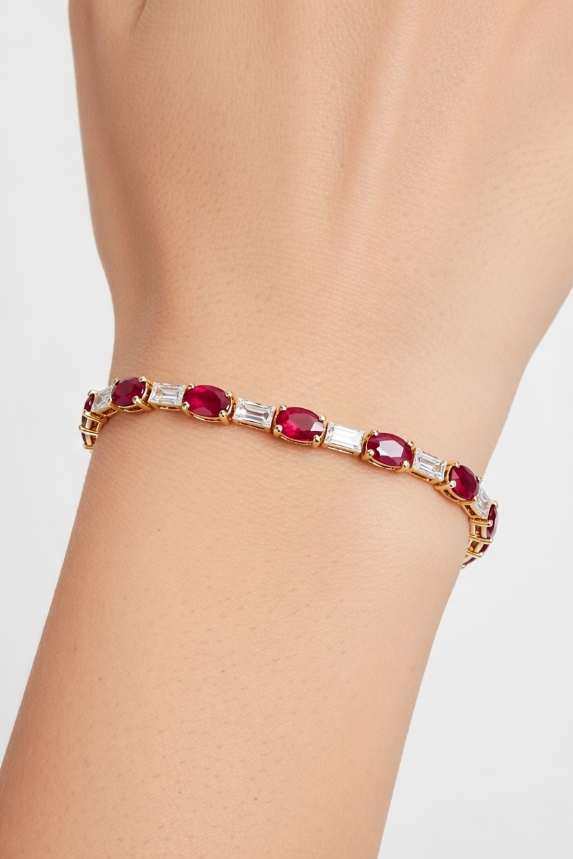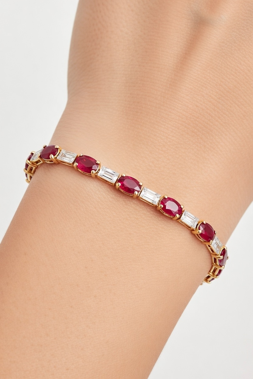 Oval Ruby & Baguette Diamond Tennis Bracelet